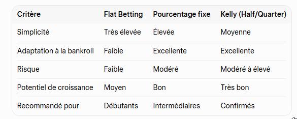 In this article, we compare in detail the three most used strategies: flat betting, percentage of bankroll and the Kelly criterion. You will discover their advantages, their risks and which one best suits your profile.