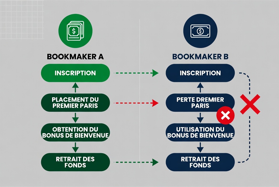La idea principal consiste en registrarse en dos (o varias) casas de apuestas ANJ que ofrezcan buenos bonos de bienvenida, luego realizar apuestas opuestas en el mismo evento. Así, cualquiera que sea el resultado, recuperas una parte importante de tus apuestas gracias a los bonos.