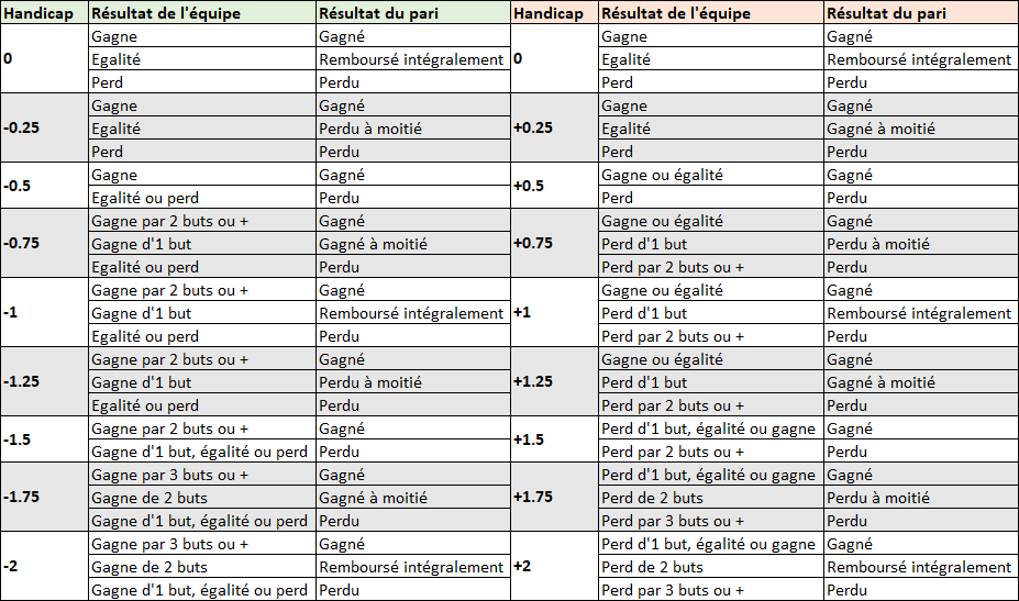 Cuanto más alto sea el número, más favorito es el equipo. Un hándicap negativo (ej.: 1.5) significa que el equipo debe ganar por más de 1.5 goles para que la apuesta sea ganadora.
